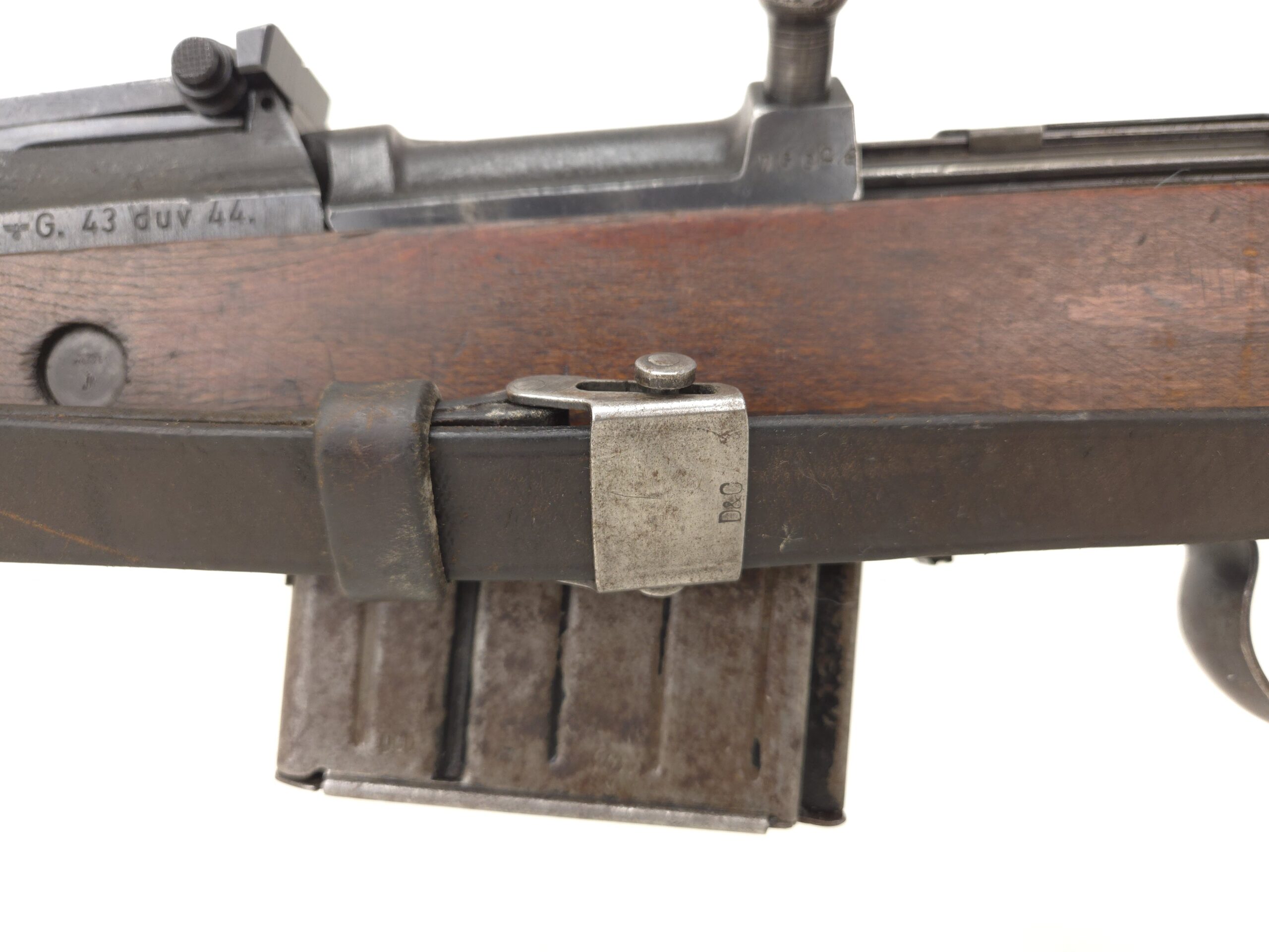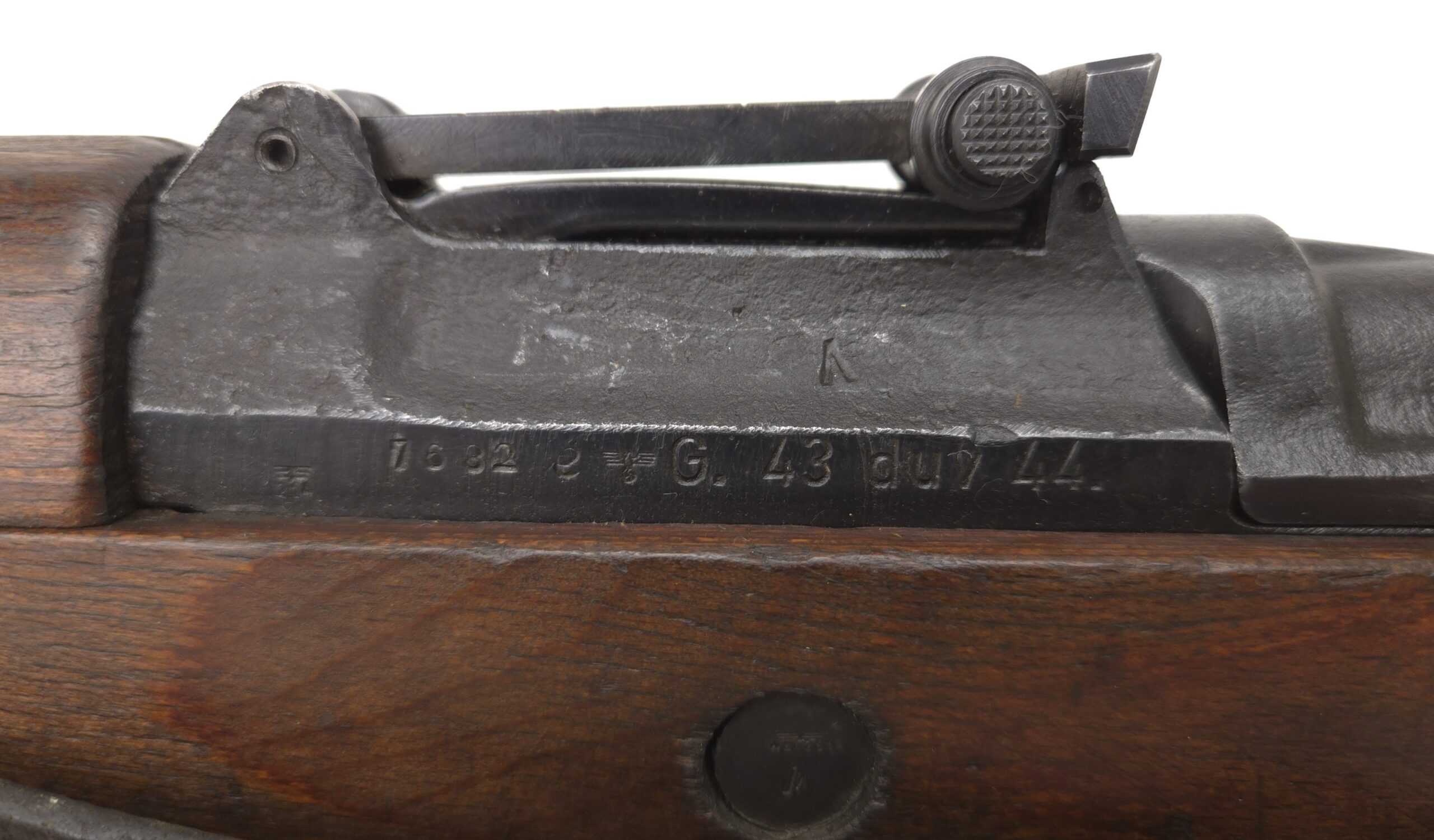 This is a very nice all original German G43 Semi Auto Rifle that was manufactured at the Berlin-Lubecker Maschinenfabrik Factory in 1944. Mechanically this rifle is in excellent working order and is a great shooter. This rifle is not import marked and is most likely a WWII GI bringback. This rifle is all serial number matching and correct. It has a very good bore and gas system. The stock is very nice with clear matching serial number and WaA cartouches. These rifles are getting increasingly difficult to find especially in original matching condition!