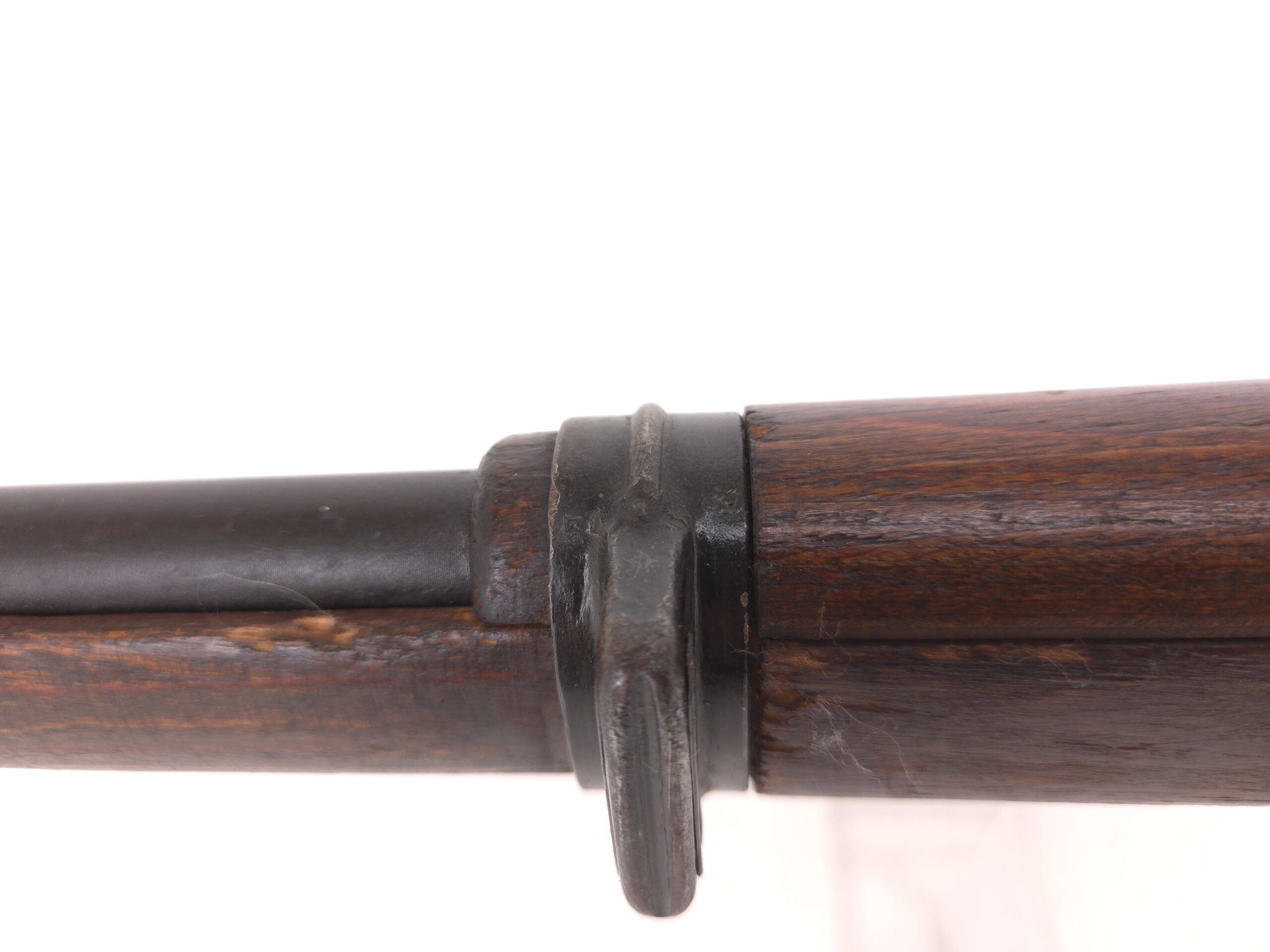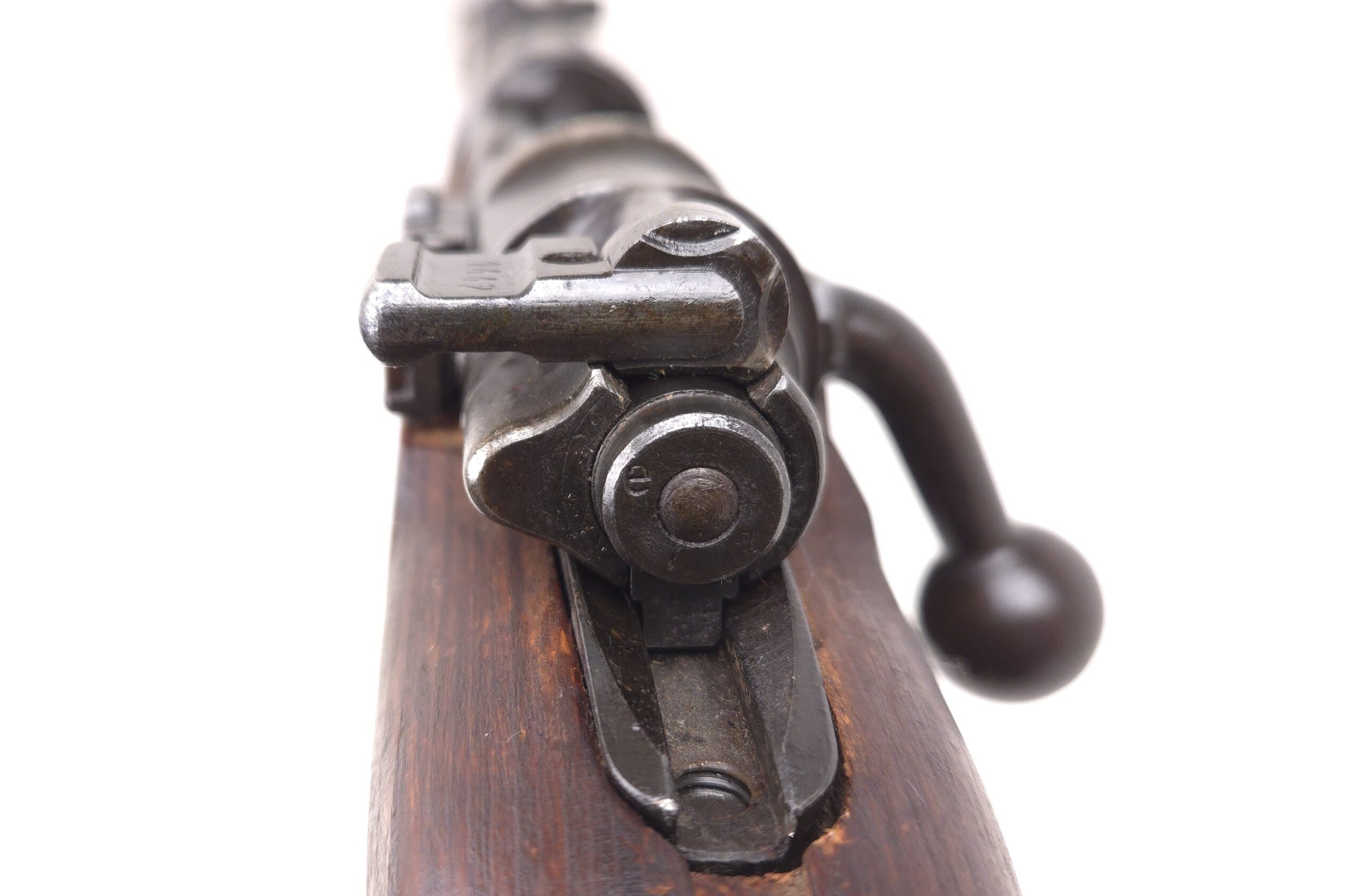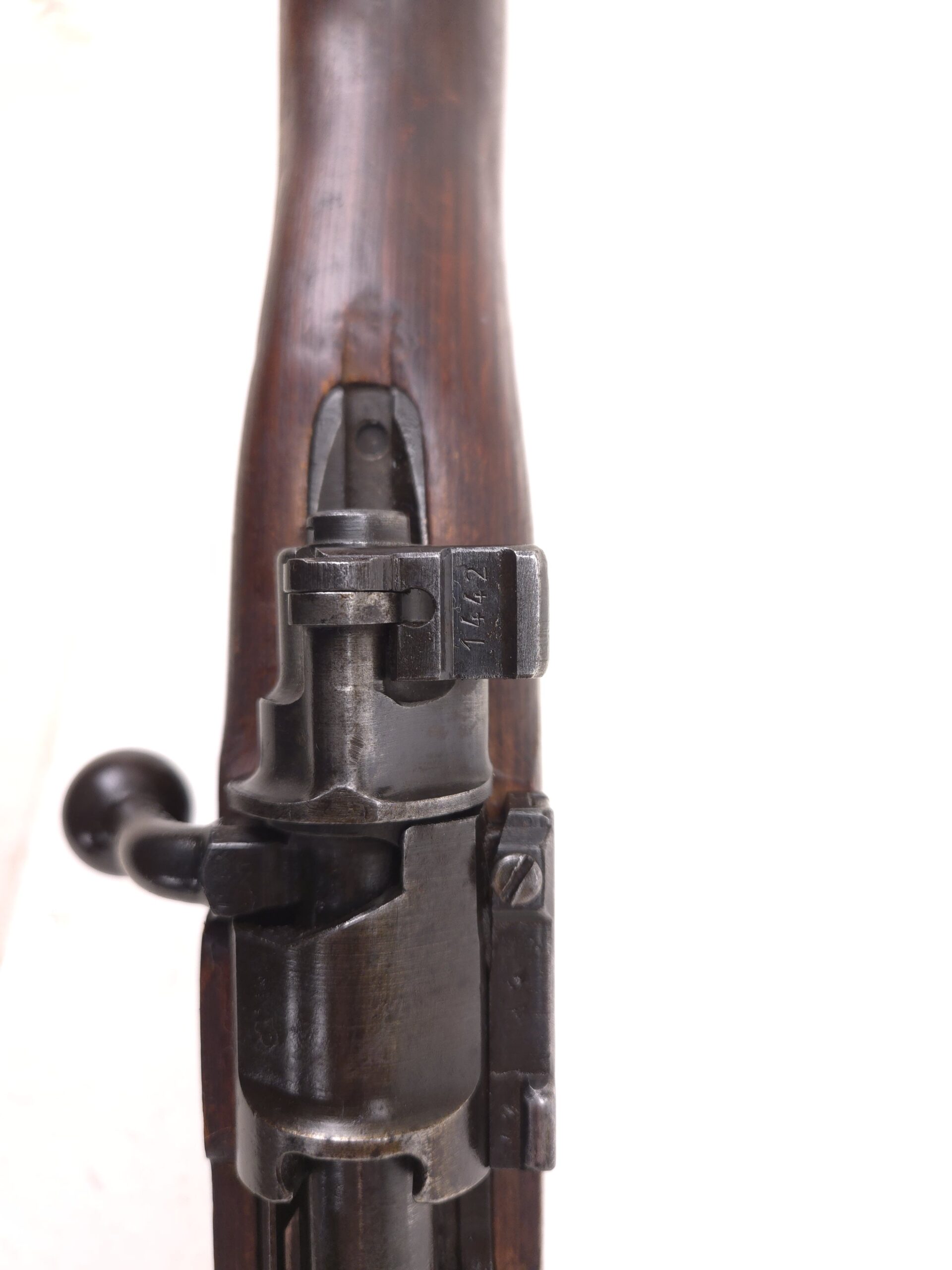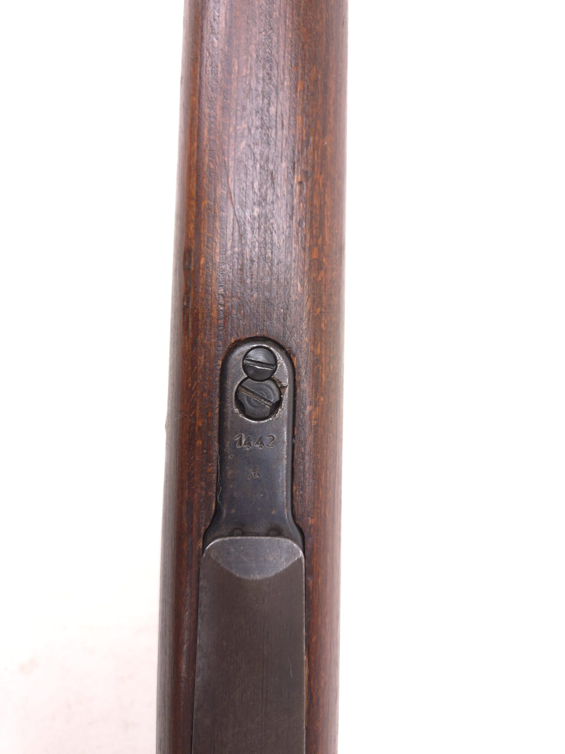 This is a very nice all original German K98 Mauser rifle that was manufactured in 1943 at the Gustloff Werke Factory. Mechanically this rifle is in excellent working order and is sure to be a great shooter. This rifle is not import marked. The stock has been duffle cut under the lower band. This rifle is a WWII bringback retaining all original matching parts with the exception of the barrel bands and handguard. This rifle is an excellent example of a WWII bringback K98 Mauser rifle that will make an awesome addition to your WWII rifle collection!