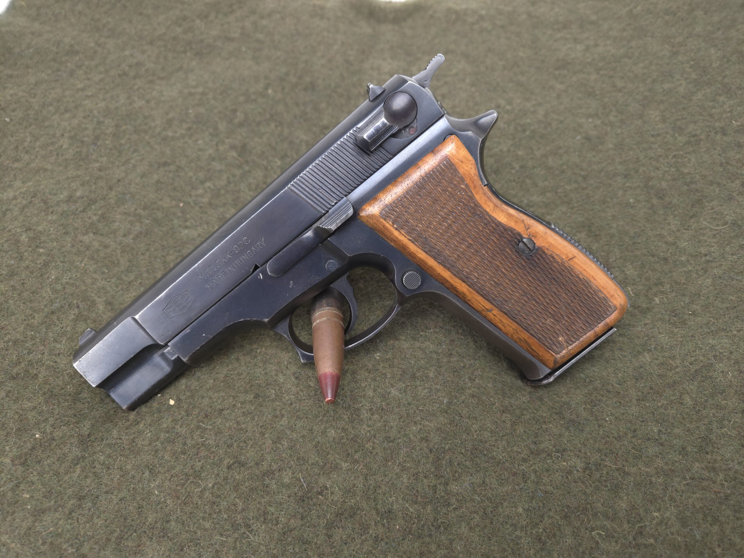This is a very nice all original Hungarian FEG gkk-92c Hi Power clone pistol chambered in 9mm Luger. Mechanically this pistol is in excellent working order and is sure to be a great shooter. This pistol is a double action 9mm Hi power clone made in Hungary. It is import marked on the side of the slide. Overall this is a great pistol that will make an excellent shooter.