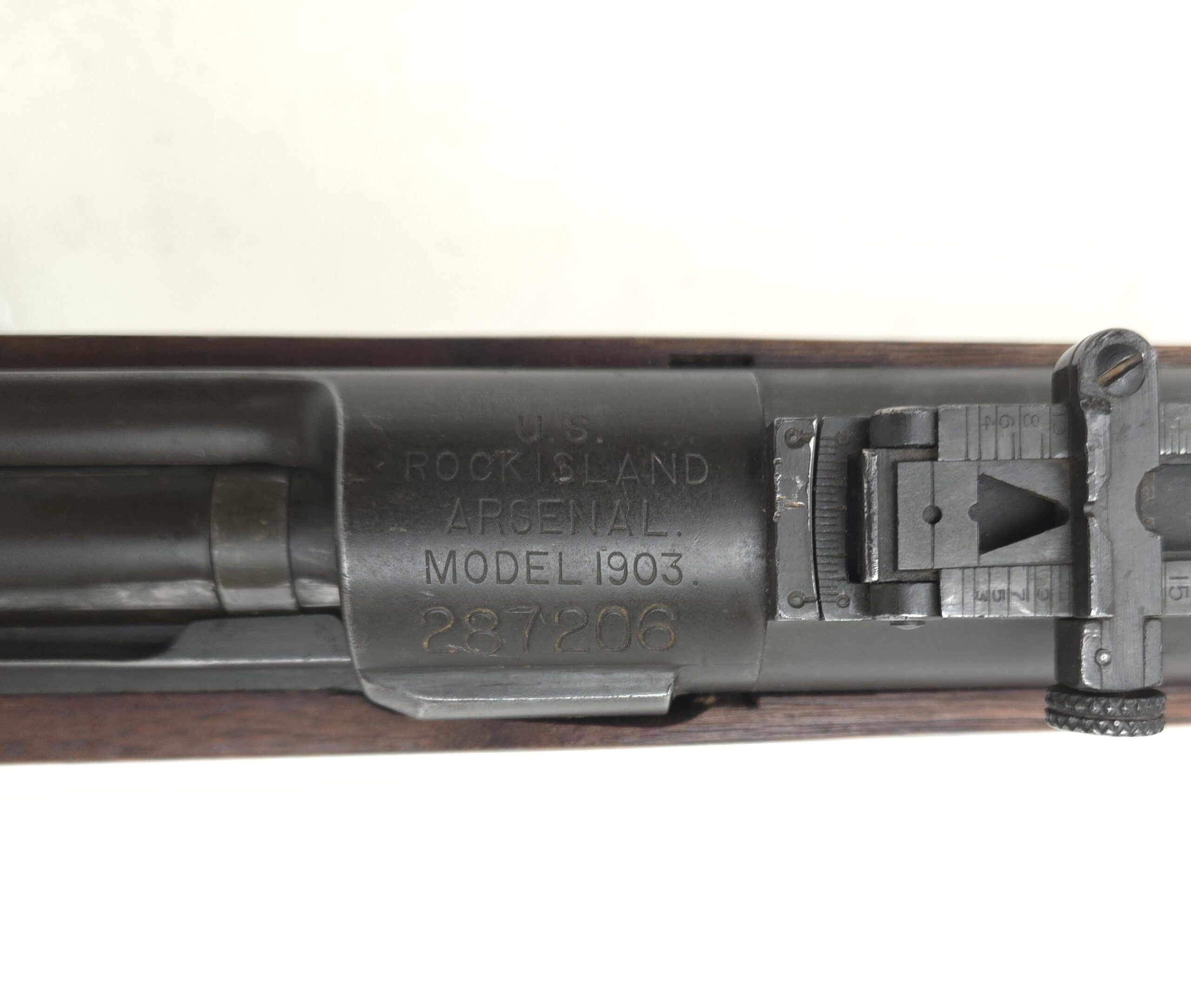 This is a very nice Rock Island Arsenal 1903 Rifle that was rebuilt in 1942 for use in WWII. Mechanically this rifle is in excellent working order and is sure to be a great shooter. It is not import marked in any way. The stock has a “3GM-K” cartouche. This is a very nice Rock Island Arsenal 1903 that has been used throughout WWI and WWII.