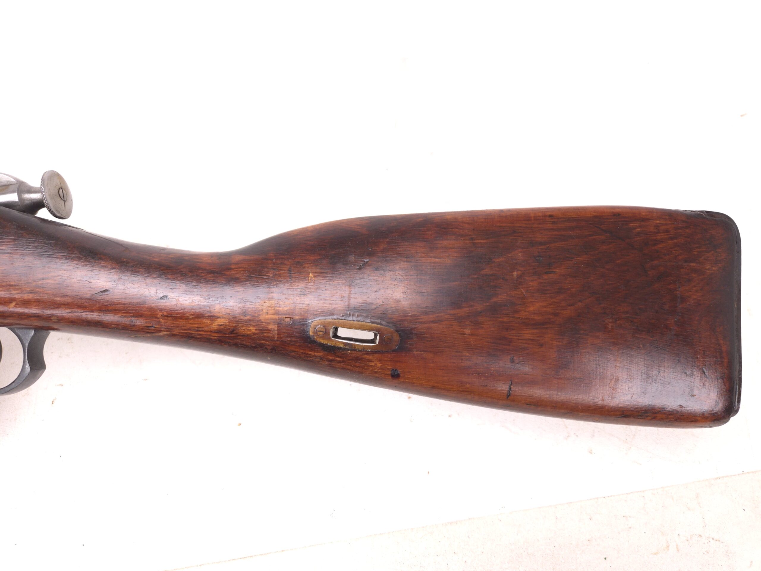 This is a very nice all original Russian 91/30 Mosin Nagant that was manufactured in 1937 at the Izhevsk Arsenal. Mechanically this rifle is in excellent working order and is sure to be a great shooter. This rifle is import marked on the side of the receiver. It still retains the original pre WWII stock with screwed in sling escucheaons. This rifle has the triangle 25 marking on the barrel shank and red filled numbering on rear sight. This rifle is sure to make an excellent shooter as well as a great collectible for your collection.