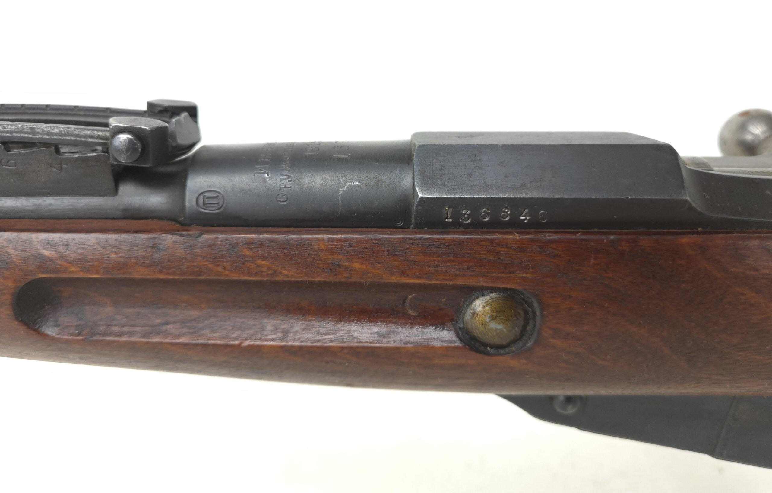 This is a very nice Russian M91 Mosin Nagant long rifle that was manufactured in1914 at the Izhevsk Arsenal.  Mechanically this rifle works great and is sure to be an excellent shooter.  This rifle is import marked at the end of the barrel.  The Russian crest has been scrubbed from the barrel shank.  This is often seen on Balkan Capture rifles.  This is a really neat rifle that is in very good condition throughout.  Don’t pass on this beauty as it won’t be around long!