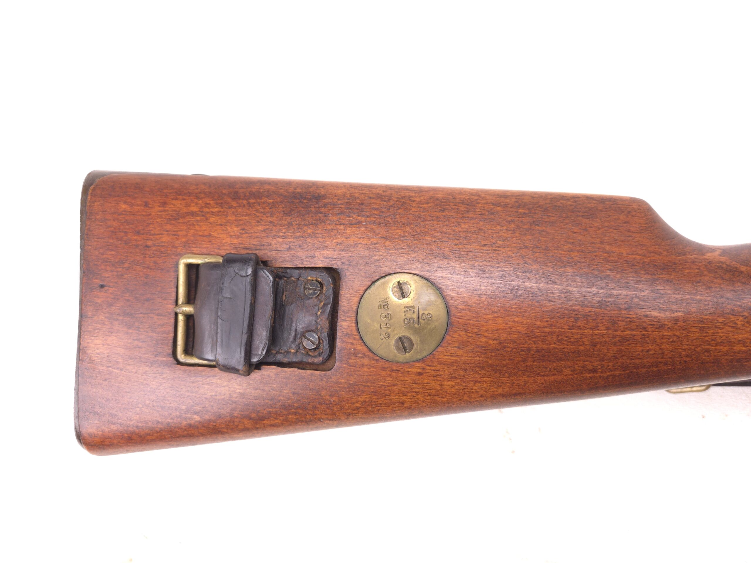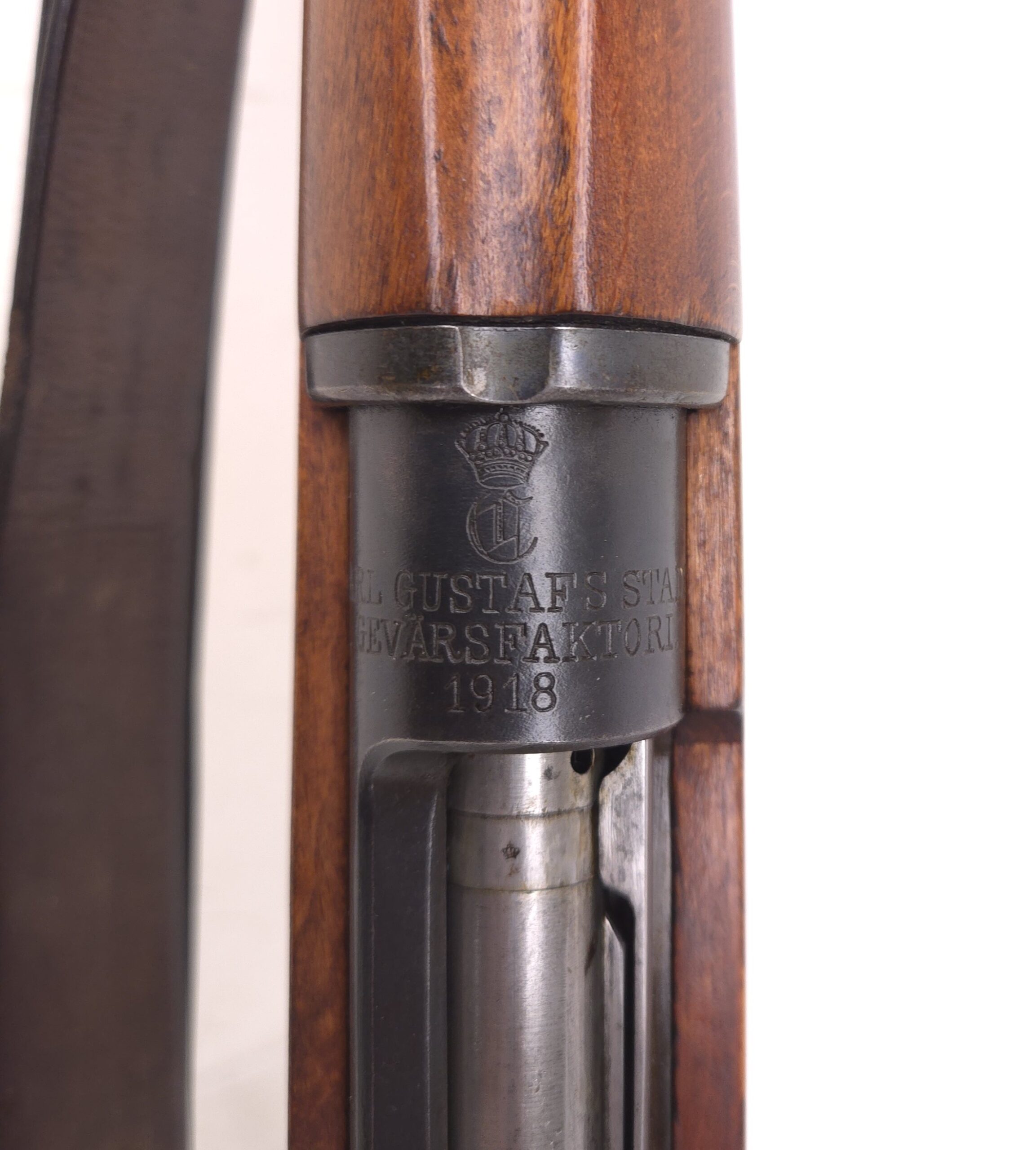This is a very nice all original Swedish M94/14 Mauser carbine that was manufactured in 1918 at the Carl Gustafs Stad Factory. Mechanically this carbine is in excellent working order and is sure to be a great shooter. This carbine is all original and correct with correct leather sling. There are no import marks on this carbine. It still retains the original unit marked disk on the right side of the stock. These carbines are getting increasingly hard to find especially in this condition.